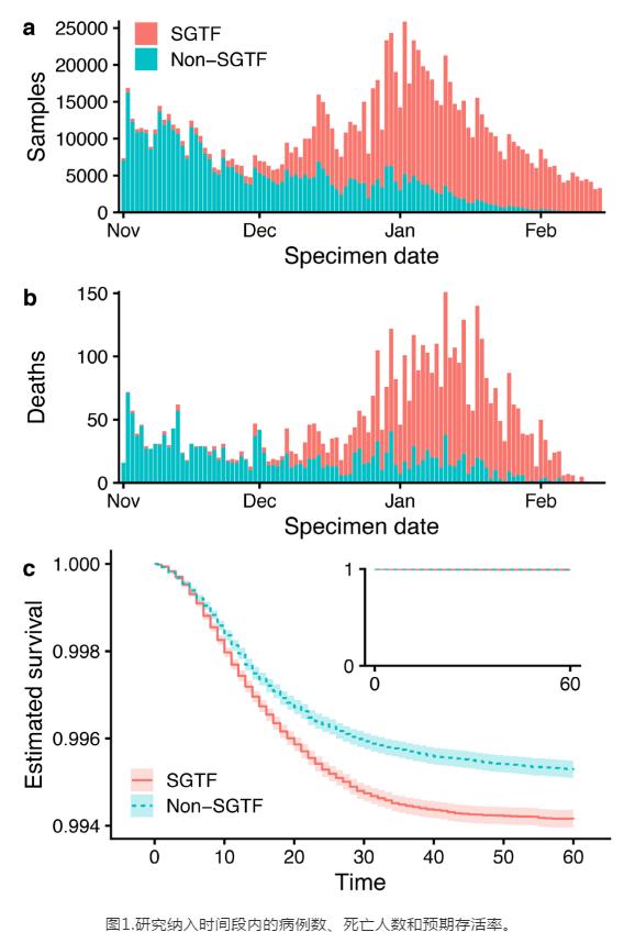 结果发现,在抽样调查的54906例确诊感染变异新冠病毒B.1.1.7的病例中,相关死亡病例为227例;另外抽样调查的54906例感染此前已有新冠病毒毒株的病例中,相关死亡病例为141例。这两批患者在年龄、性别等方面均接近。