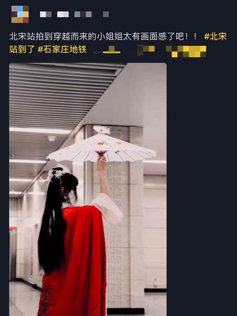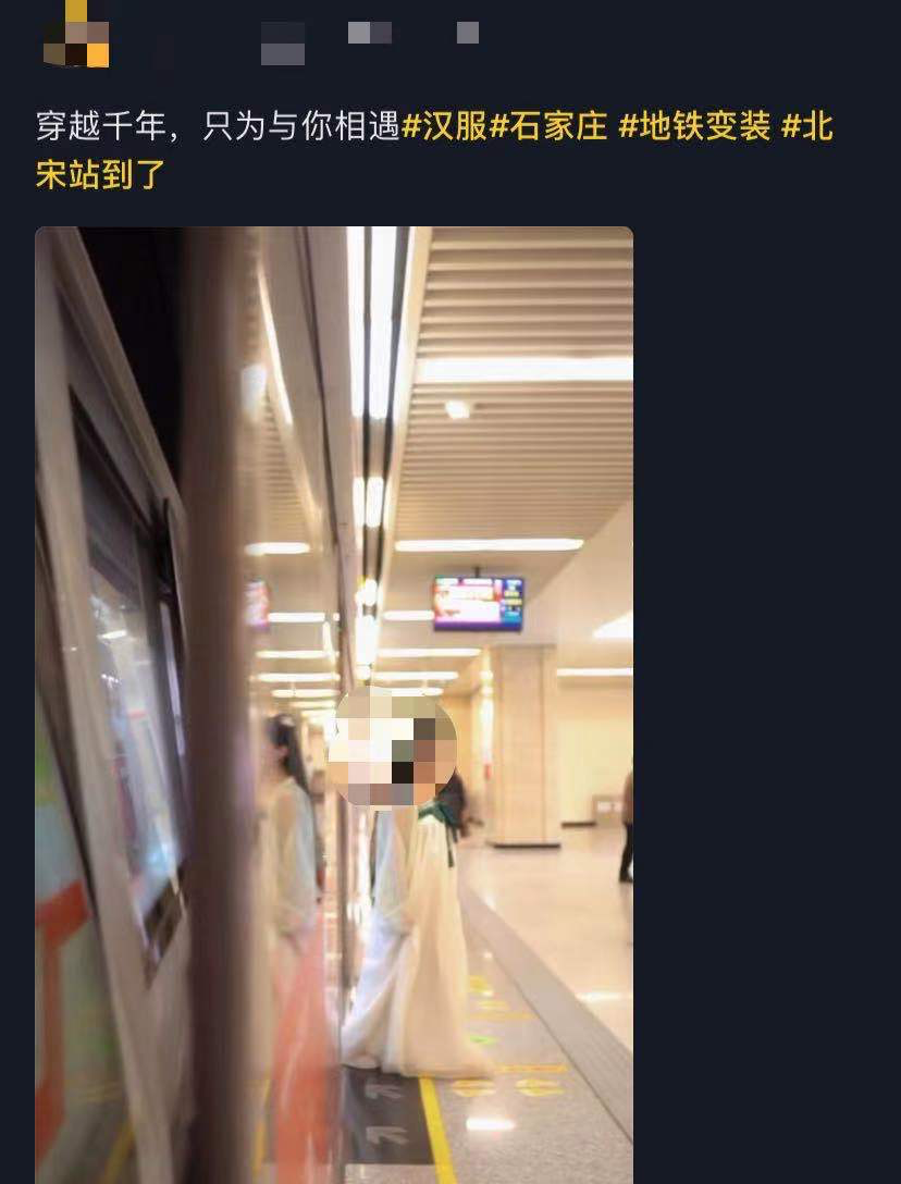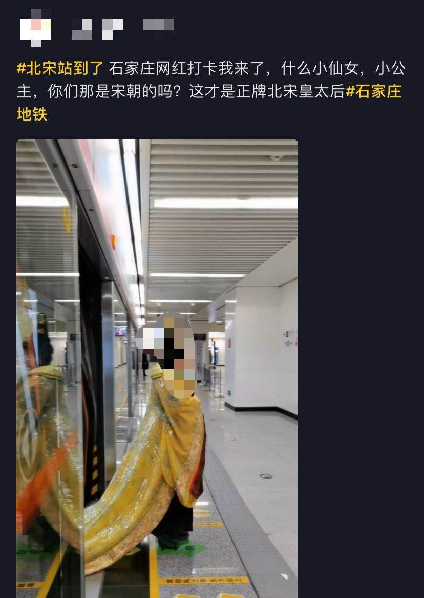 最近,河北石家庄地铁北宋站火了。因“北宋”站与朝代“北宋”同名不少人穿着古装前来打卡玩“穿越”。
