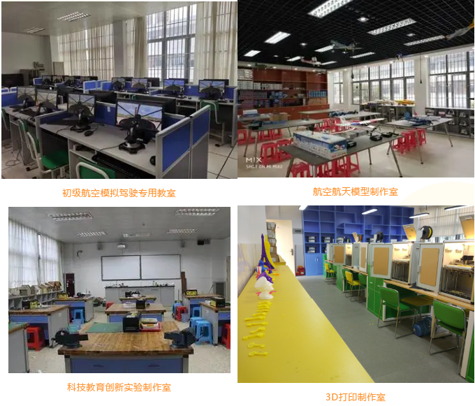 学校模拟驾驶活动室配备了民航波音737飞机1:1模拟机一台,波音系列教学机两台,通用航空塞斯纳飞机模拟机一台,战斗机模拟机一台,航空模拟塔台一套,摇杆模拟飞行活动室两间,是全国配备规格和使用率最高的高中之一。