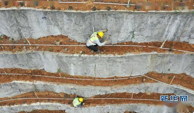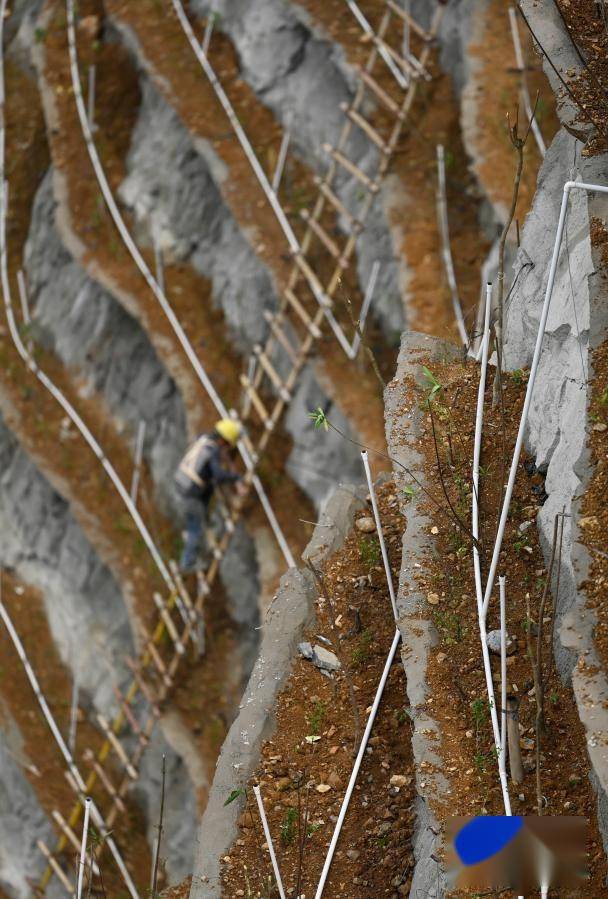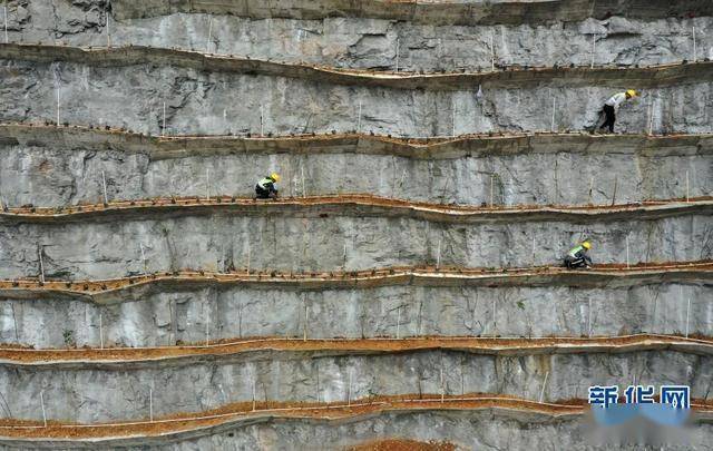 回填泥土后种植石山紫薇、夹竹桃、三角梅等进行绿化,并在“梯田”搭建供水供养料的管道,以利于植物生长。(来源:新华社)