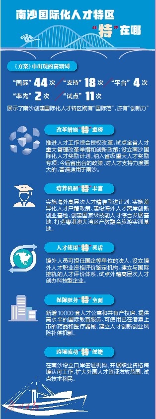 值得一提的是,为加强特区创建工作,在南沙形成人才政策高地,《方案》还提出,今后省出台的政策,对人才的支持力度优于本方案的,按照“政策从优”原则普遍适用。