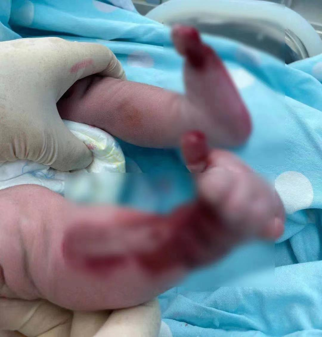 李女士(化名)今年35岁,乐乐是她盼了很久的第一个孩子。然而,2月22日孩子出生时,李女士还没来得及感受初为人母的喜悦,就看到了触目惊心的一幕:乐乐的两条小腿延伸至足背及趾头部位,就像剥了皮一样,只有一层薄薄的皮下组织覆盖。血红色的肌肉暴露在外,血管脉络清晰可见,一碰就会破裂流血,随时面临感染等风险。
