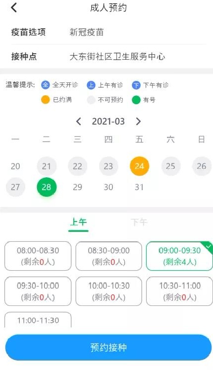 4.随着接种工作推进,接受18-59岁人群预约免费接种新冠病毒疫苗的接种单位会越来越多,暂时预约不上的市民可过一段时间(几天)再次尝试。