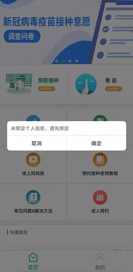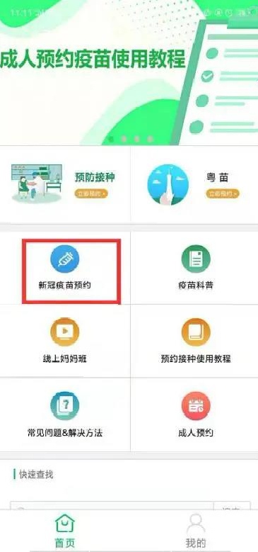 进入首页,点击“新冠疫苗预约”,进入新冠疫苗预约界面。