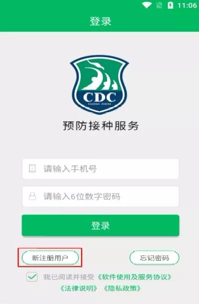 (备注:如果您已有预防接种服务App账号,在登陆页面直接输入手机号码与密码登录即可)