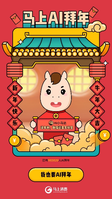 牛年除夕当晚,马上消费人工智能研究院悄悄上线了一款新春留言的H5小程序《AI数字人留声机》。用户可以在留声机内留下一段语音祝福,AI留声机便会生成一个专属的私人订制的可爱卡通人物小马达,它会将用户的新年留言声情并茂的送到亲友面前,让新春拜年不同往日,不落俗套。不仅如此,马上的数字人小马达留声机还采用了盲盒机制,针对九种有趣的场景随机抽取一段话送给用户,让用户不用再绞尽脑汁的思考文案。