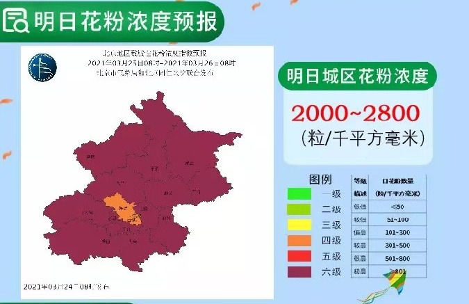 春日晴暖,春花烂漫,引来不少市民观赏。与此同时,空气中花粉浓度急剧升高。今天白天,风力不大,有利于花粉的传播,据市气象台发布的花粉监测预报,今天城区的花粉颗粒数在每千平方毫米2000~2800粒,持续在极高水平,敏感人群要做好健康防护,远离树木繁茂区域,如出现重度过敏症状需及时就医。