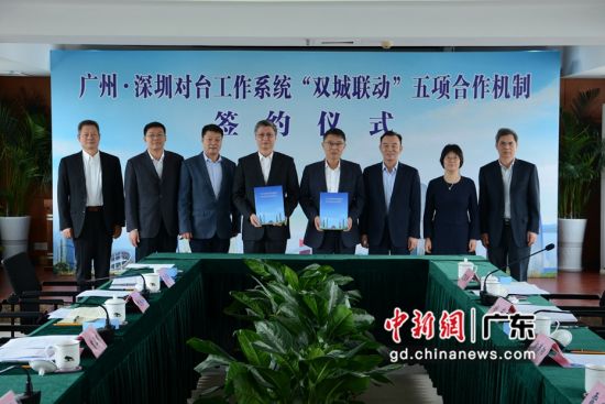 中新网广东新闻3月24日电 (记者 郑小红)广州、深圳市委台办22日在深签署《广州•深圳对台工作系统“双城联动”五项合作机制》(简称《五项合作机制》),双方将通过建立一系列合作交流机制,努力为广州、深圳实现“双城联动、比翼双飞”作出贡献。