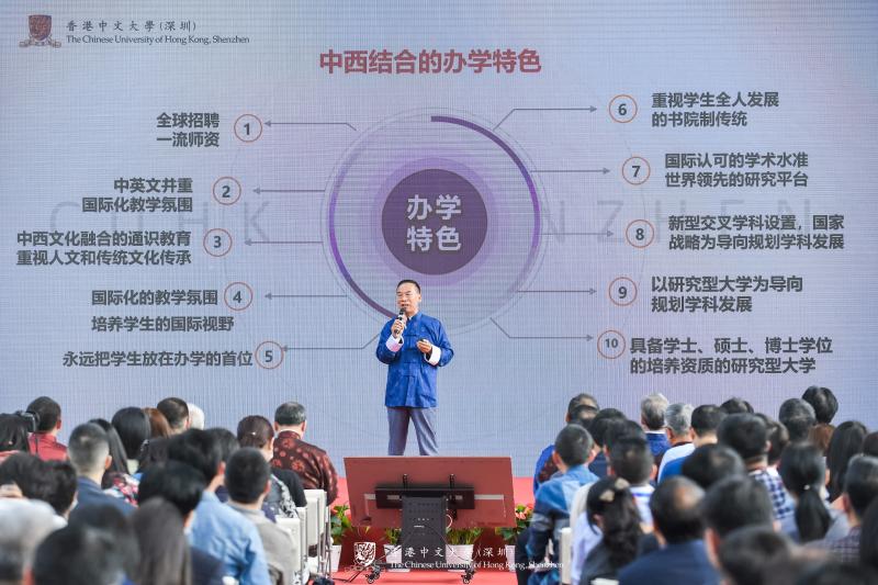 香港中文大学(深圳)校长徐扬生介绍大学办学进展和师生风采。