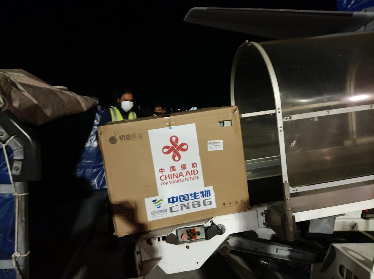 △当地时间3月24日晚 中国援助马尔代夫第一批国药新冠疫苗抵达马尔代夫维拉纳国际机场