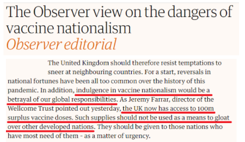 西方国家不仅对外大行疫苗民族主义、利己主义、保护主义,还在失去道义的同时将矛头指向越来越受欢迎的别国疫苗。