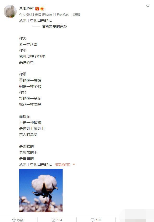 网易娱乐3月26日报道 26日,陈建斌老师为家乡新疆的棉花写了一首小诗《从泥土里长出来的云——给我亲爱的家乡》,十分暖心。