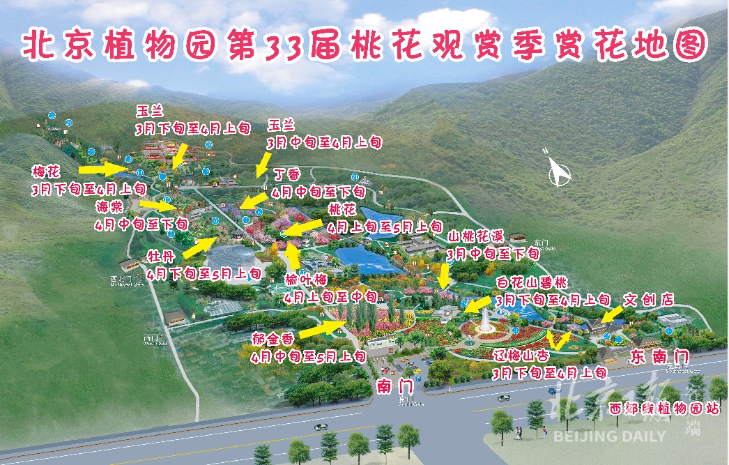 为便于大家赏花,北京植物园专门编制了赏花地图,市民游客可以根据地图了解北京植物园春花开放情况,制定自己的春季赏花计划。