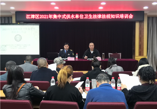 江津区卫生健康综合行政执法支队负责人在培训会上作了动员讲话,对2020年生活饮用水卫生监督情况进行了总结,分析了当前全区供水单位卫生管理中存在的问题和不足,说明了饮用水卫生安全的重要性及此次培训的目的和意义,希望参训人员提高认识,端正态度,认真听,仔细记,把学到的知识运用到工作中去。