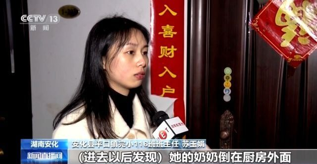 湖南省益阳市安化县平口镇完小116班班主任 苏玉娟:进去以后发现她的奶奶倒在厨房外面,两个小孩子是在卧室里面。