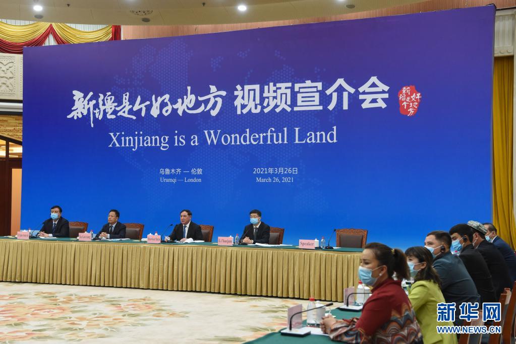 这是3月26日拍摄的“新疆是个好地方”视频宣介会现场。新华社记者 丁磊 摄
