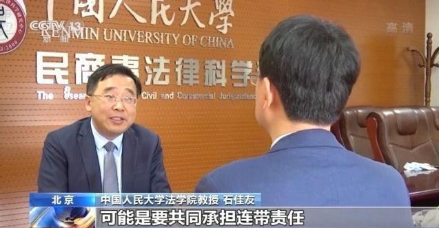 中国人民大学法学院教授 石佳友:如果确实按照现有的证据,现有的手段无法查清责任人,那么是由可能加害的建筑物使用人,那就是说相关的业主可能是要共同承担连带责任。比如说一个门洞(单元)下来,也可能二层以上业主有可能要承担连带责任,在民法典里面也是有规定的,这是有可能的。但一定是在前面的情况下,你比如说第一无法查清行为人,对吧?第二个角度就是安全保障,物业是不是尽到安全保障义务,在这些几个前提之下。