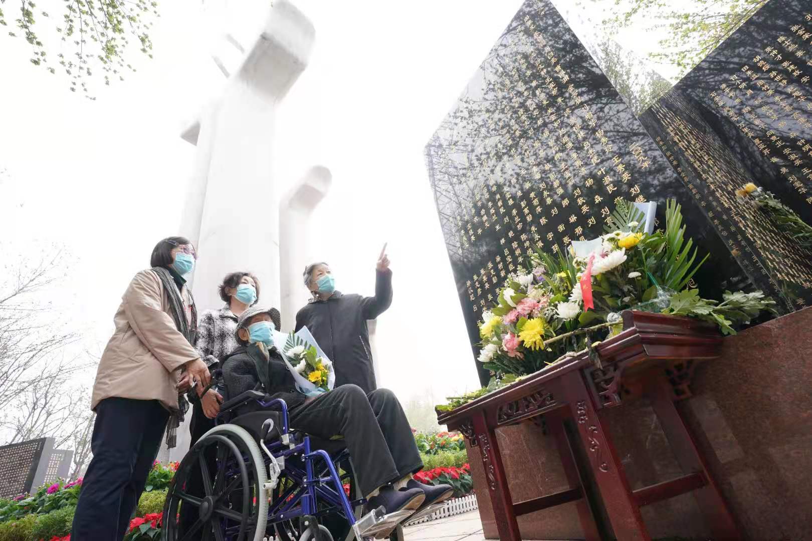 生命纪念碑前,北京协和医学院、北京大学医学部、首都医科大学师生和北京市红十字会志愿者、捐献者家属代表等150余人手捧寄托无限哀思的黄色、白色菊花,神情凝重,面向纪念碑,肃立、默哀。