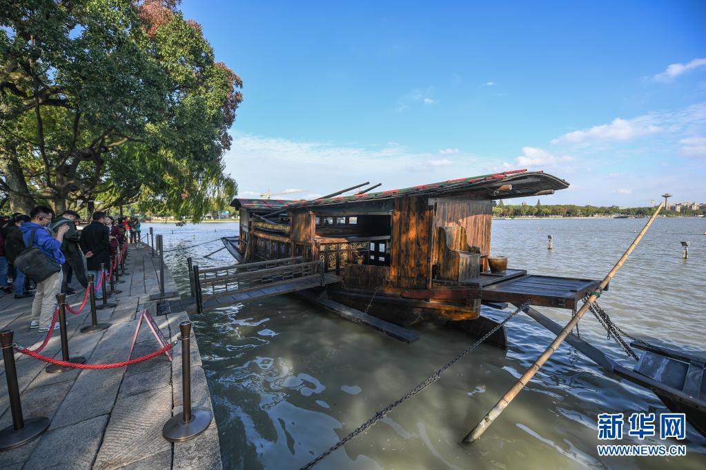 停靠在浙江嘉兴南湖湖心岛的南湖红船(2020年10月27日摄)。新华社记者 徐昱 摄