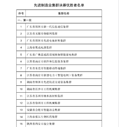 据悉,为贯彻落实党的十九大报告提出的“促进我国产业迈向全球价值链中高端,培育若干世界级先进制造业集群”的要求,自2019年启动国家先进制造业集群竞赛以来,工信部搭建起集群间相互比拼的“赛场”,先后通过两轮集群竞赛,最终拟确定25个重点支持的产业集群。