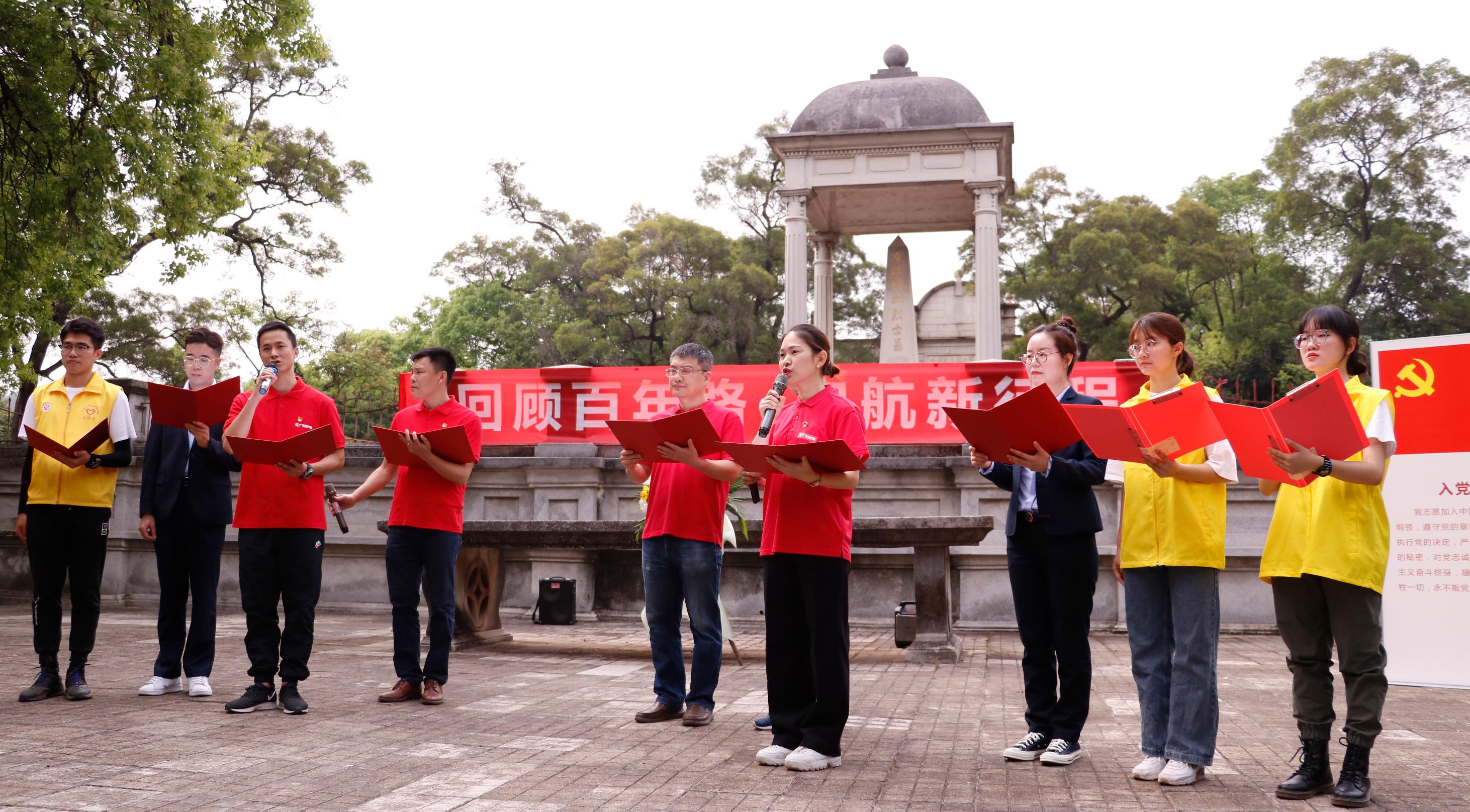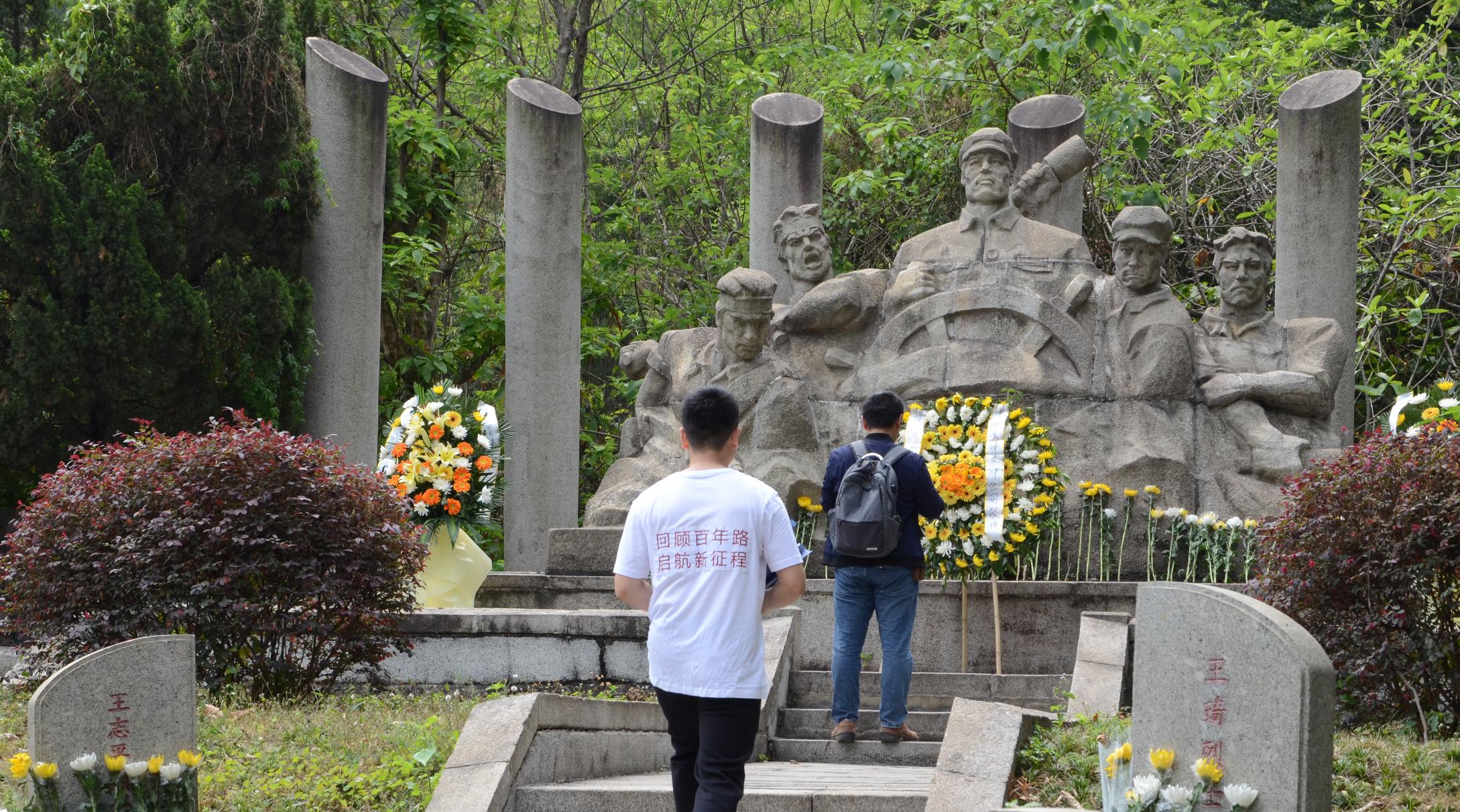 第二站是首次对外开放的海军烈士陵园。海军广州烈士陵园建于1994年,为纪念在1950年中国人民解放军海军第一战役——万山海战中牺牲的海军烈士而建,陵园右侧立有战斗英雄林文虎烈士铜像及碑文。讲解员结合海军烈士陵园历史给参与者上了一堂生动的微党课,让全体成员深刻领悟共产党人为争取国家独立和民族解放英勇牺牲的爱国主义精神。