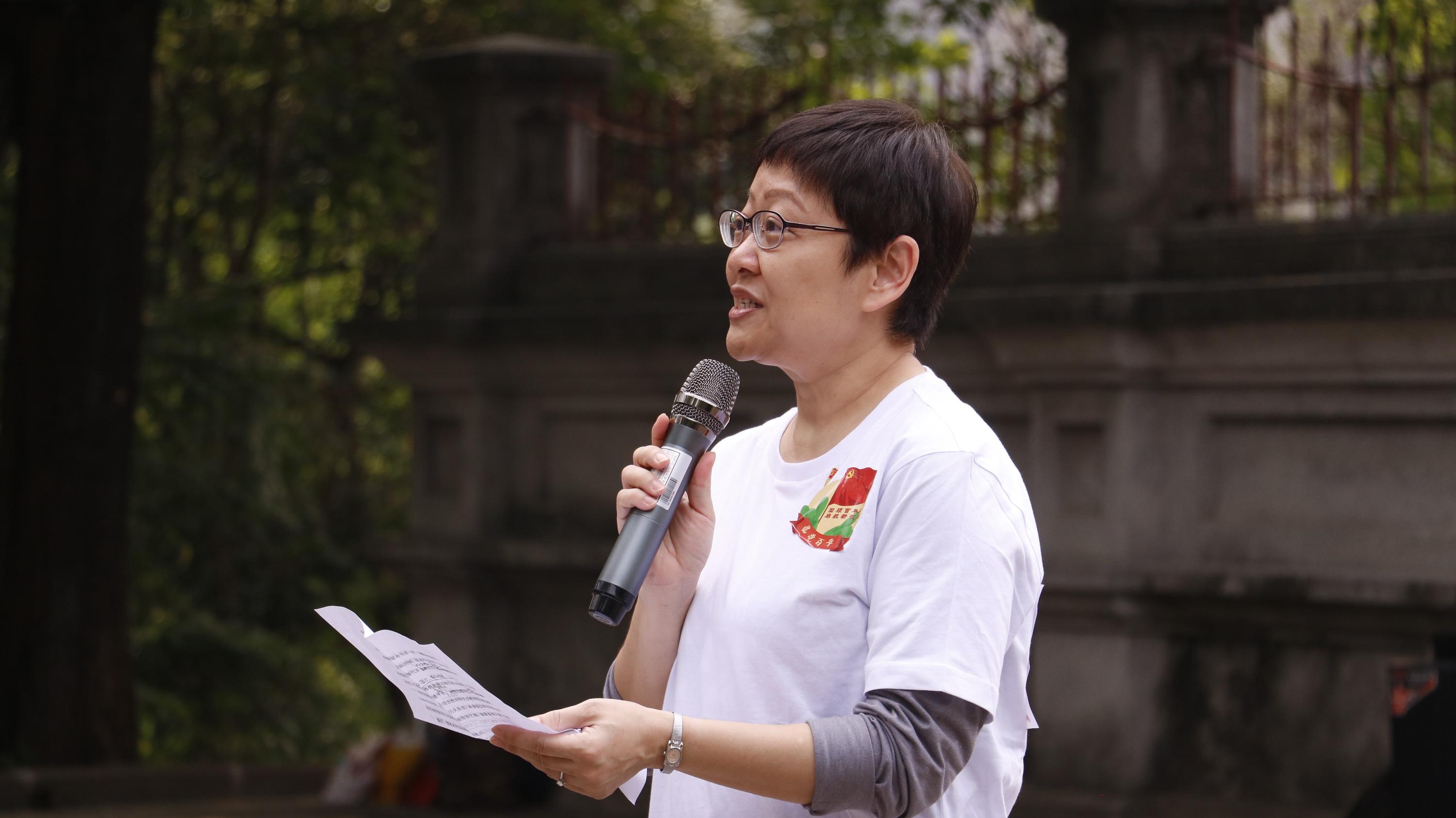 活动现场,广州市黄埔区文化广电旅游局副局长张骞致辞。她表示,百年征程波澜壮阔,百年初心历久弥新,希望在场的各位党员同志能发扬红色传统,传承红色基因,铸就信仰之魂,凝聚奋进力量,以更加昂扬的姿态迈向新的征程。