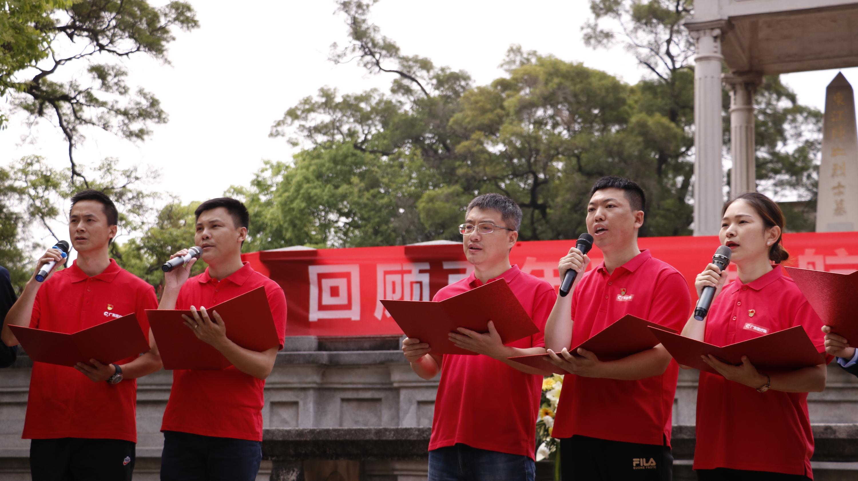 东征阵亡烈士墓园位于黄埔军校校本部西南面,前临珠江,后枕万松岭,有“小黄花岗”之称。参与活动者都怀着庄严肃穆的心列队整齐,安静地聆听黄埔军校旧址纪念馆讲解员唐利娜讲述东征烈士的事迹。