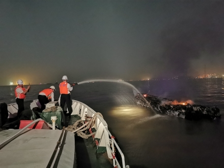 大洋网讯 3月28日凌晨,广州沙角海事处“海巡09080”轮紧急出动,成功处置一起快艇失火险情,未造成人员伤亡和水域污染。