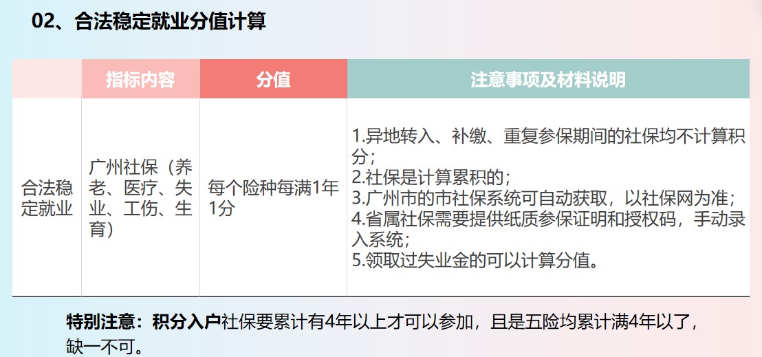 2.合法稳定就业情况材料:申请人需提供最近满一年或以上的有效劳动合同(个人就业信息无需提供材料,以广州市政府信息共享平台查询为准)。