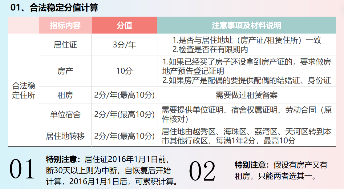 1.已在越秀区办理《广东省居住证》连续满一年,现在越秀区有合法稳定住所且已连续居住满一年。