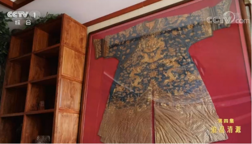 清代蓝底蟒袍、清代雍正年制黄地绿彩龙纹菱口盘、乾隆年制粉彩花卉大碗、石釉粉彩花瓶……