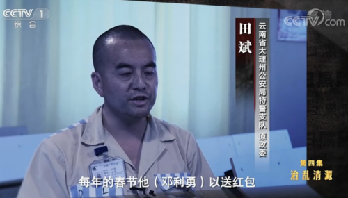 为了让非法生意不被打击查处,邓利勇涉黑组织先后拉拢腐蚀了多名执法人员。 “我们特警支队去查处电子游戏赌博的时候,是一个领导给我打了招呼以后认识的。每年的春节他(邓利勇)以送红包,还有那个烟、酒这种形式来,过年来看望我。”