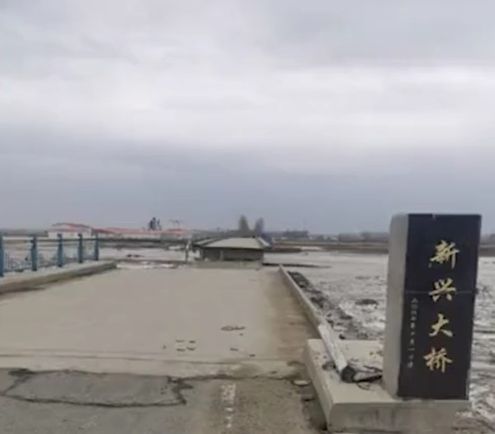 据介绍,新兴大桥建成于2007年10月1日,这座桥有双向两车道。从居民上传的视频上看,其中一段桥面完全垮塌,出现数十米长的空缺,桥下水面上有许多的冰排流过。