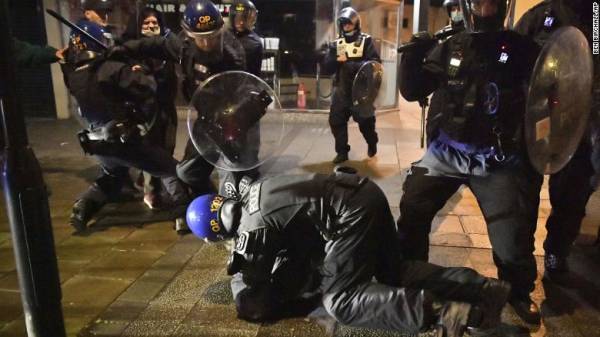 当地时间26日晚到27日凌晨,在布里斯托市当地民众举行的示威游行中,抗议者和警察发生了激烈的冲突,警察出动大量警力、派出警犬驱赶抗议者,甚至有媒体人员遭到暴力冲击。此外,手持警盾的警察向抗议民众推进,并用警盾推搡甚至击打抗议者。据英国当地媒体的一名记者自称,他在表明记者身份后仍然遭到了警方的殴打。对于警方的行为,英国民众表示强烈抗议。