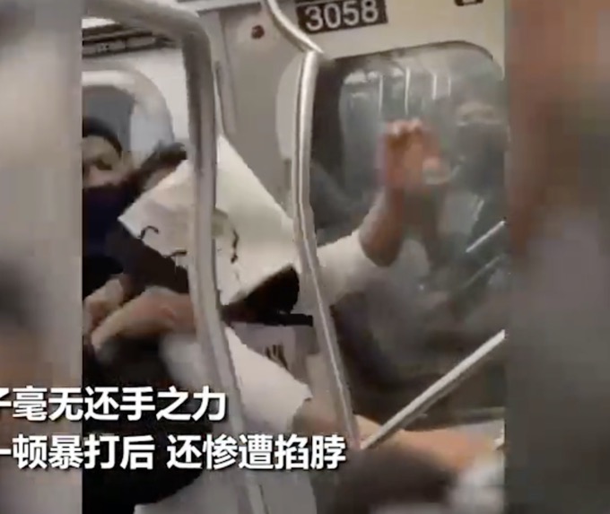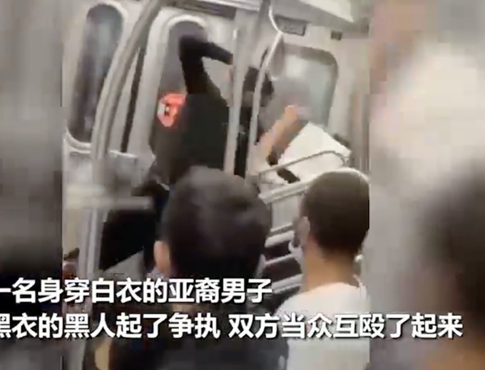 3月29日,推特上流传一段黑人在纽约地铁暴打亚裔的视频,引起网友关注。视频中一名身穿白衣的亚裔男子和身穿黑衣的黑人起了争执,双方当众互殴了起来。然而亚裔男子瞬间被黑人压制,被黑人按在座位上对着头部一顿暴捶,持续了十多秒。周围的乘客冷眼旁观,甚至还有人吹口哨。