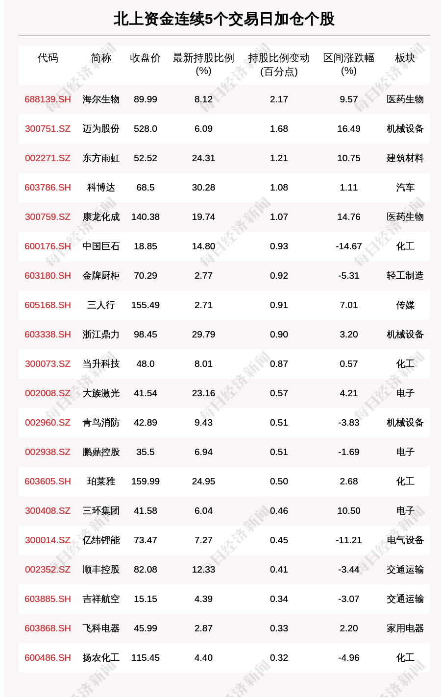 2丨整点投资丨揭秘北上资金:连续5日加仓这42只个股(附名单)