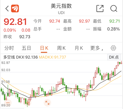 每经AI快讯,截至发稿,美元指数涨0.09%报92.81,稍早一度涨0.26%报92.97,续刷2020年11月13日以来新高。