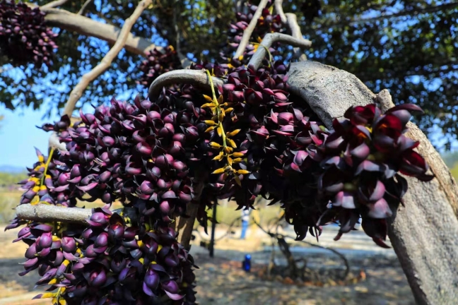 园艺场负责人曹永全告诉记者,园艺场内共种植了6000株禾雀花,共有紫色、翠绿色、粉红色、黄色、白色5种颜色,“目前紫色开的最多,再过一周其他颜色的花也会陆续开放。”据曹永全透露,园艺场自2017年种植禾雀花,但一直没有对外开放,近日将正式开园。