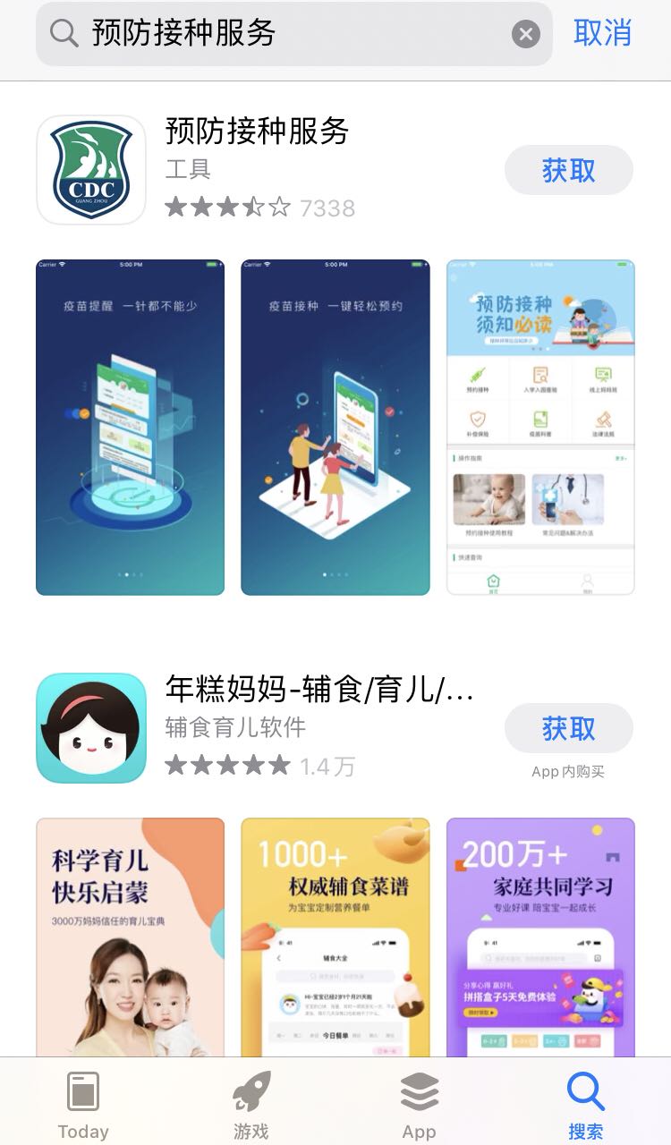 1. 搜索“预防接种服务”APP进行下载