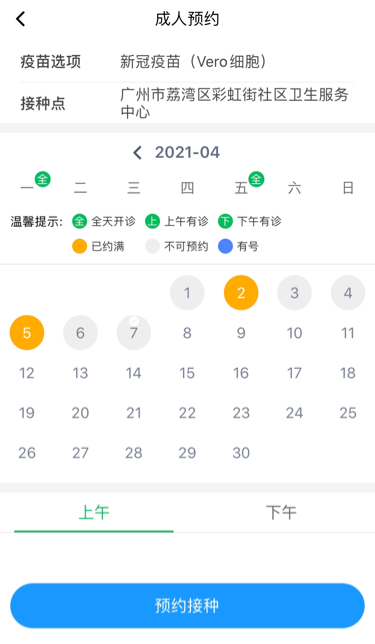 小e发现,目前能预约到4月5日,不过已满约。