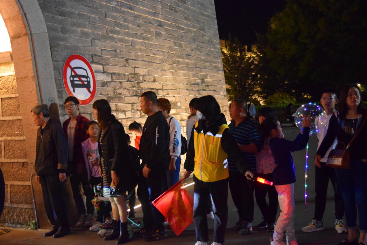 在景区现场,志愿者协助景区工作人员维持现场秩序,为游客测量体温、引导游客做好个人防控措施,佩戴口罩,出示健康码,有序进入景区。向过往游客提供咨询服务,并耐心对旅客的不文明行为进行劝导,提醒游客自觉遵守景区疫情防控相关规定和爱护景区环境,人人争当文明游客。