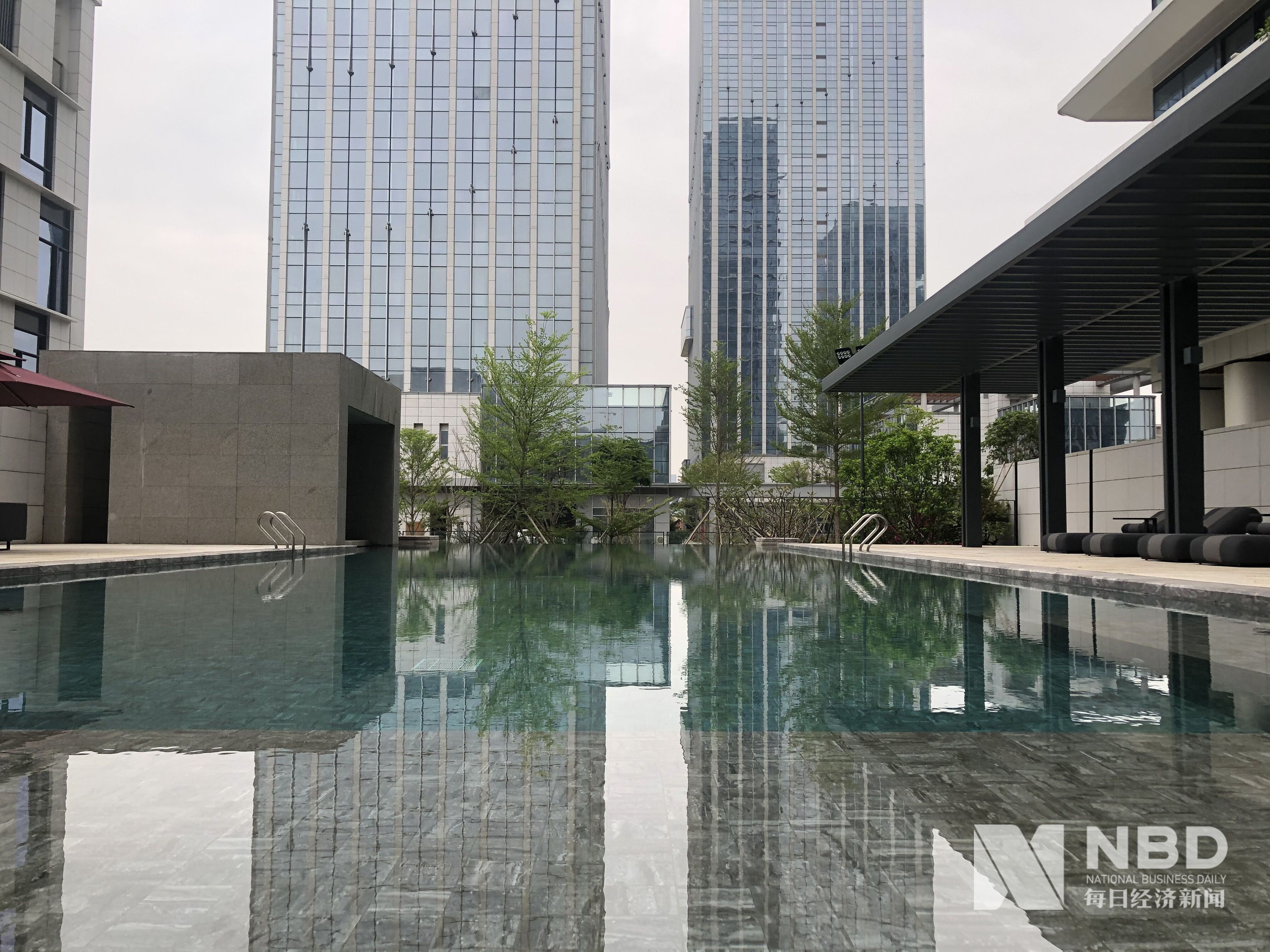 宇信大厦商铺与办公楼之间的无边际泳池已装修完成