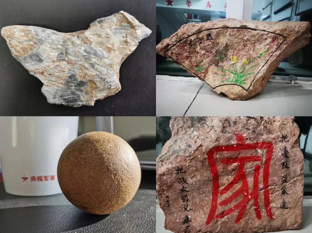 而特殊的石头也成为了官兵们的寄托。这种褐色的圆圆的石头是高原河谷特有的,官兵们把它叫“昆仑龙珠”。用它标记祖国的领土,或在上面写下自己的名字,画上中国地图,作为纪念。