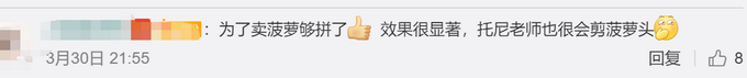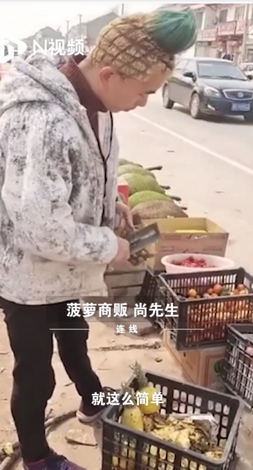 3月30日据媒体报道,河北邯郸一位小伙卖菠萝为吸引眼球,把头发理成菠萝造型。当事人尚先生介绍说,他于2019年理的“菠萝头”,感觉这个发型很稀奇,想借此让更多人认识自己,卖更多菠萝。之前一天卖三五筐菠萝,现在一天能卖七八百斤,效果立竿见影。