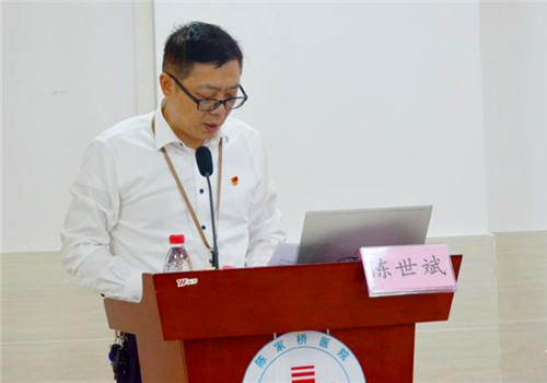 党委专职副书记景雪静宣读《陈家桥医院党委开展党史学习教育工作方案》和《关于成立沙坪坝区陈家桥医院党史学习教育领导小组的通知》。院党委书记、院长陈世斌作动员讲话,他强调,一是要提高站位,深刻认识党史学习教育的重大意义,高标准高质量完成学习教育各项任务。二是要聚焦重点,抓实关键环节,高质量高标准推进党史学习教育。三是要学史明理、学史增信、学史崇德、学史力行,学党史、悟思想、办实事、开新局,以学习教育为契机,聚焦三甲医院建设目标,谋划好医院十四五规划,实施“五大中心”建设,强化医院内涵建设,推进学科建设,打造专科品牌,以昂扬姿态奋力开启全面建设社会主义现代化国家新征程,以优异成绩迎接建党一百周年。