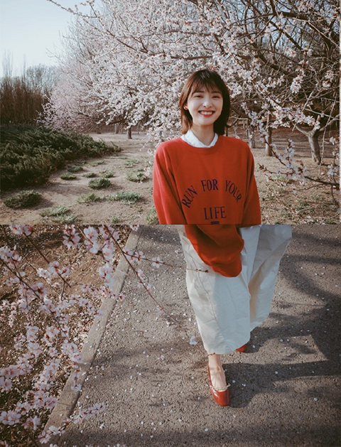 赵露思最新春日look曝光,蓝色泡泡袖短裙搭配卷发,站在樱花树下满满邻家小姐姐的即视感。看其他照片会发现赵露思应该是在工作环境,附近只有那么一棵树,所以遇到这种孤树和花拍照,一定要尽量的集中在脸部,让树和花和背景虚化。如果头发丝来一点凌乱则更显得清新随性了。