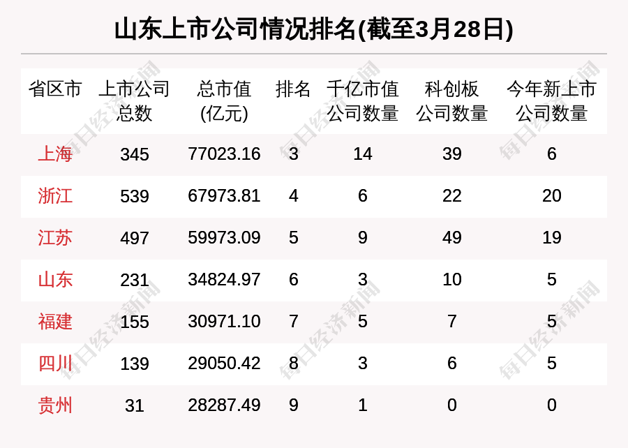 截至3月26日收盘,山东共有A股上市公司231家,其中上交所主板82家,深交所主板27家,科创板10家,创业板42家,中小板70家。