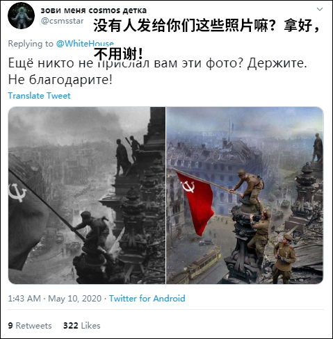 近年来俄罗斯与美国围绕二战历史问题龃龉不断。美国国防部去年5月发布文件称,“二战始于德国和苏联入侵波兰之时”。引发俄国网友不满,随后俄国网友在社交媒体上发布了重新上色的苏联红军攻克柏林的照片,却被脸书删除,引发更大的争议。
