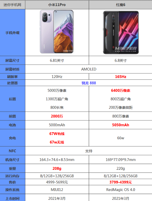 小米11Pro和红魔6: