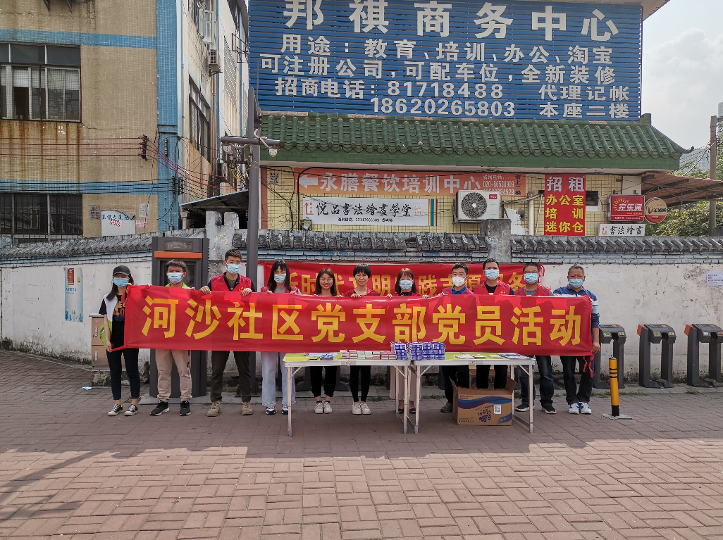 活动在河沙地铁站出口处设置宣传点,由党员向现场往来群众派发宣传品,走访周边商户,通过发放宣传单张,给大家宣传垃圾分类、防电信诈骗等信息,引导人们养成良好文明生活方式、生活习惯。